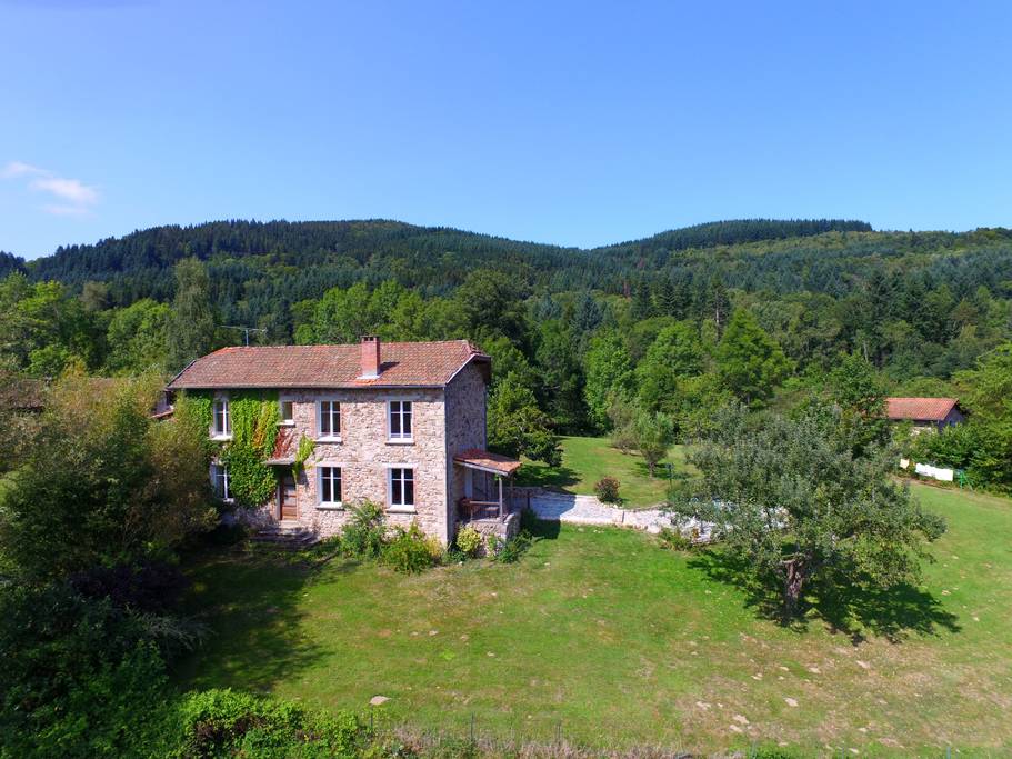En famille ou entre amis vous trouverez le calme dans cette maison de caractère entièrement rénovée et confortable. Dans un parc arboré la terrasse offre une vue panoramique. A votre disposition différents jeux de plein air, ping-pong dans la grange. Randonnées au départ de la maison, plan d’eau à 5kms. Commerces à 4kms.